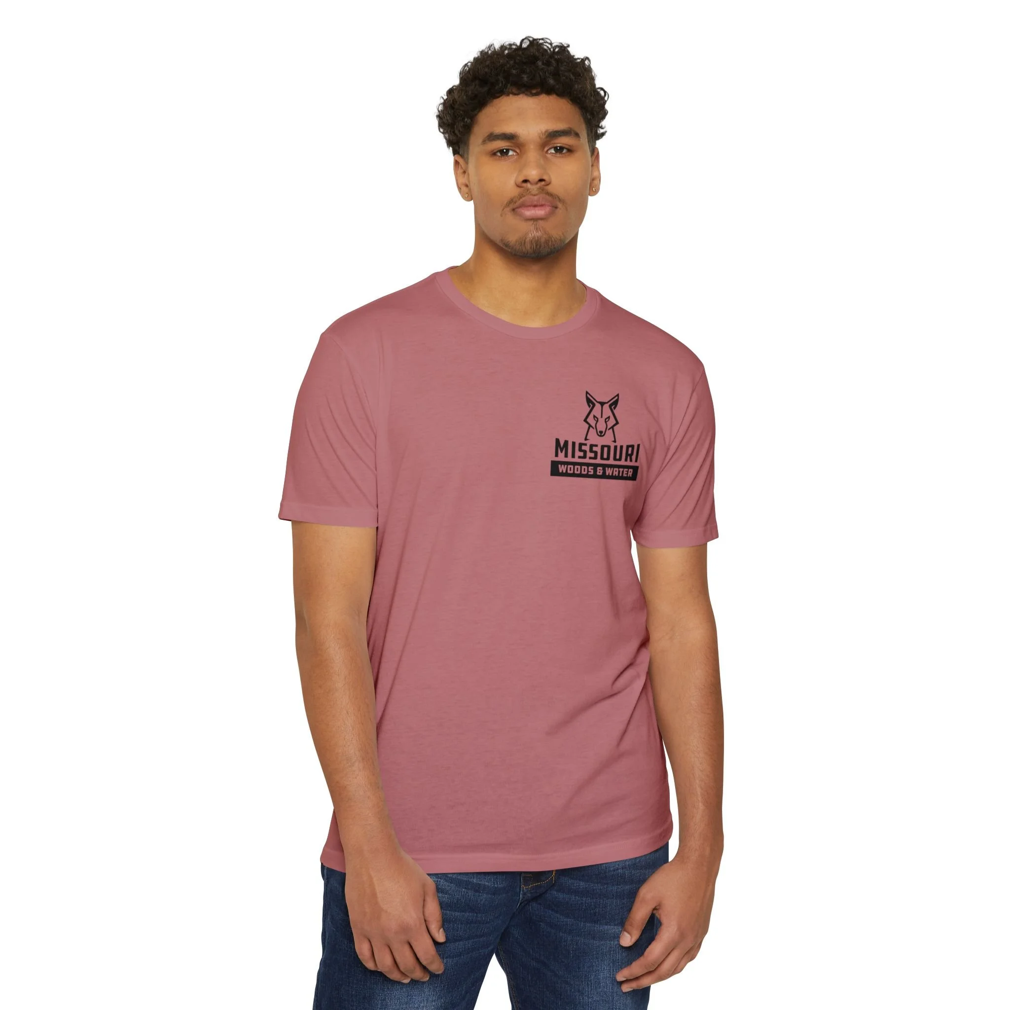 Lightweight, classic-fit tee made for folks who live for early mornings on the trail and slow afternoons by the river. The soft 60/40 combed ring-spun cotton/poly blend drapes comfortably whether you’re layering under a flannel or wearing it solo. Clean, minimal artwork — a stylized fox head and bold “MISSOURI / WOODS & WATER” lettering — sits small on the chest and larger on the back, signaling outdoors-first pride without shouting. Breathable 4.3 oz fabric and a resilient 1x1 ribbed collar keep this shirt feeling worn-in and true to size after repeat adventures. Tear-away label and DTF inner neck print add a low-profile finish that won’t irritate during long days outside.