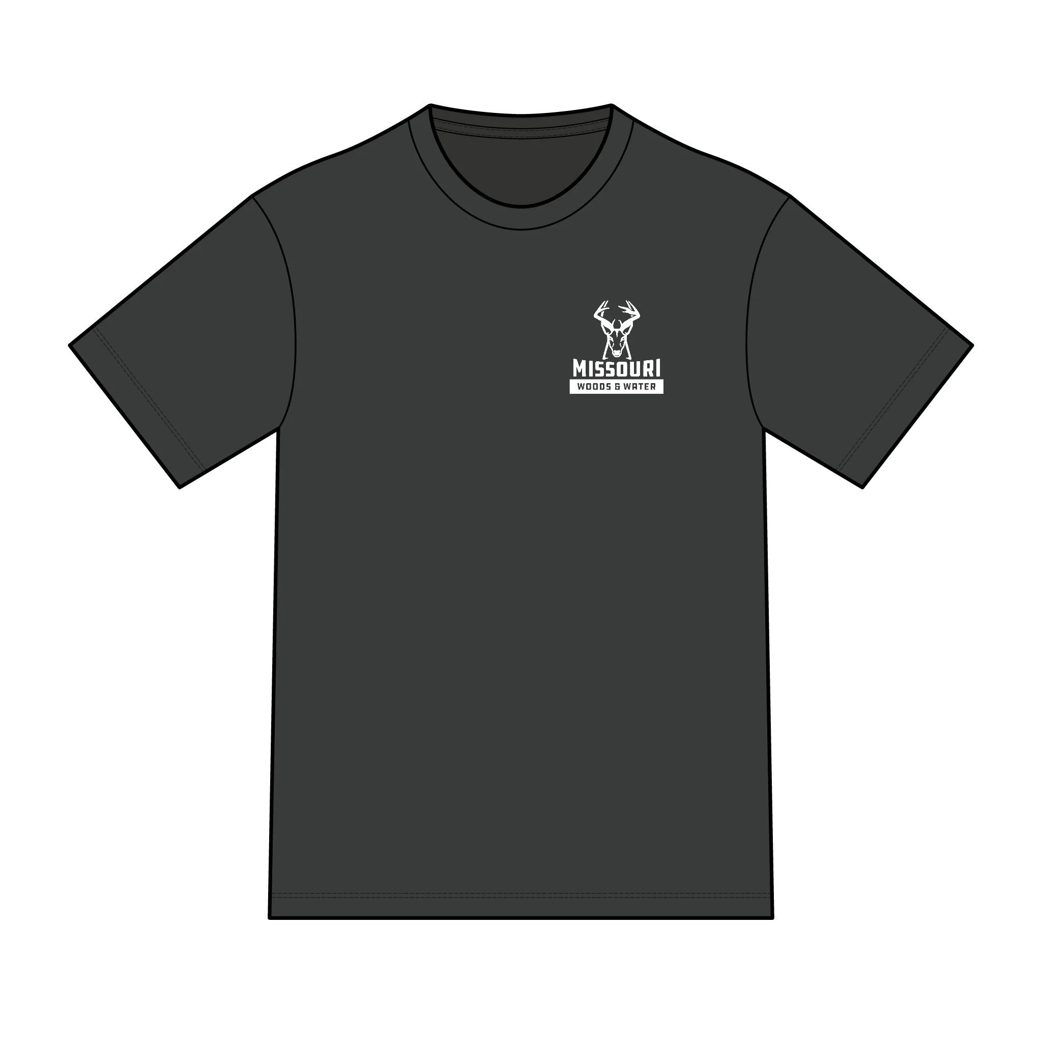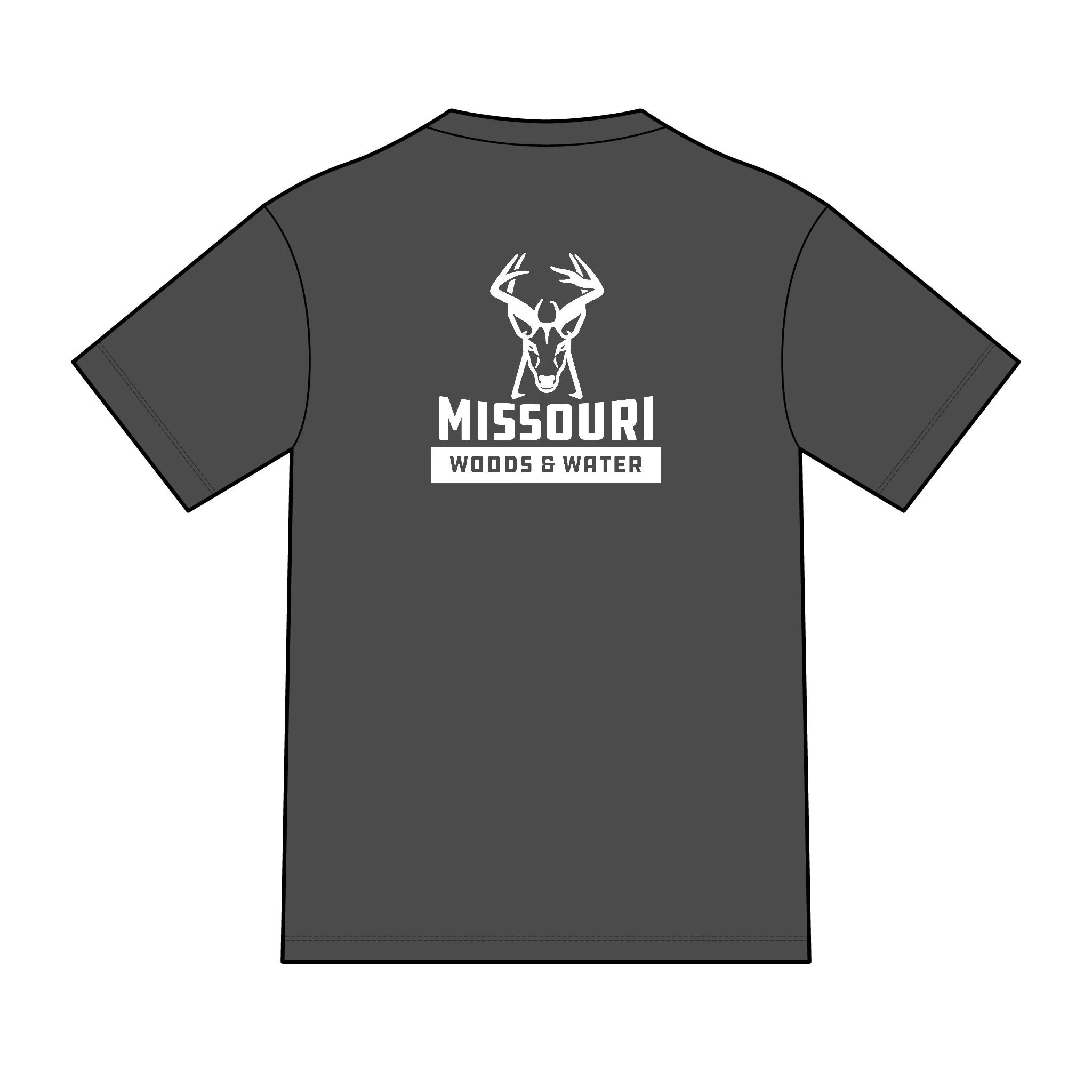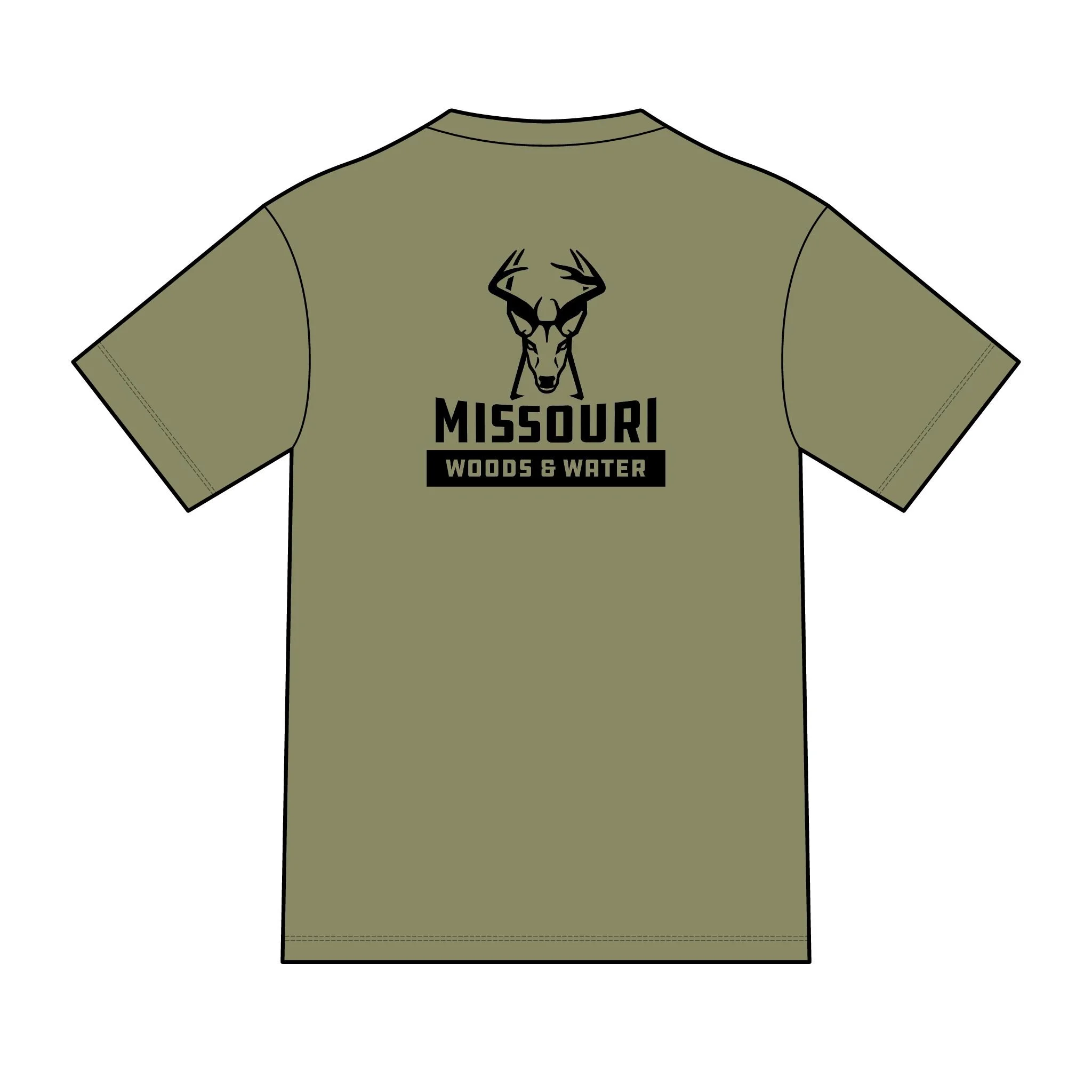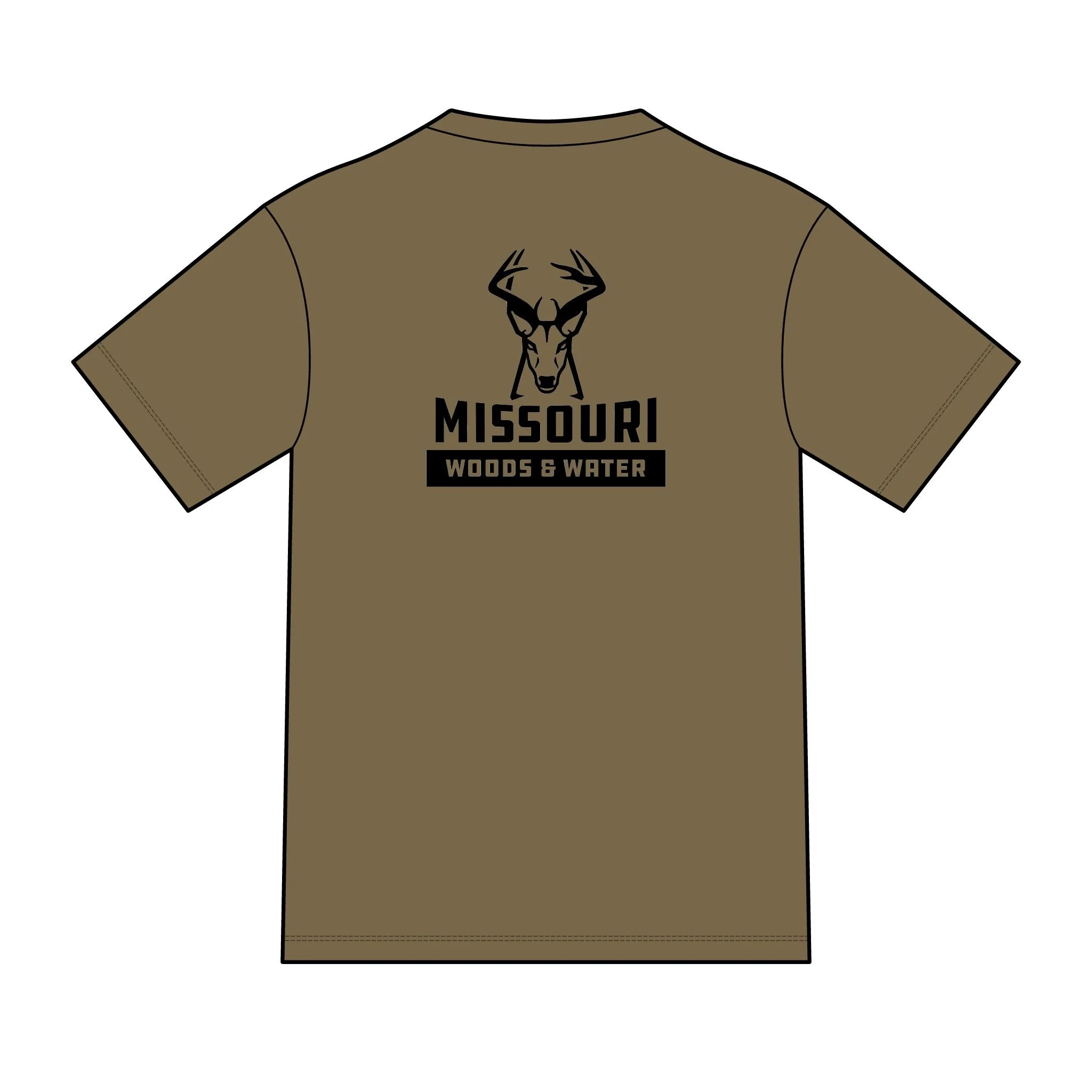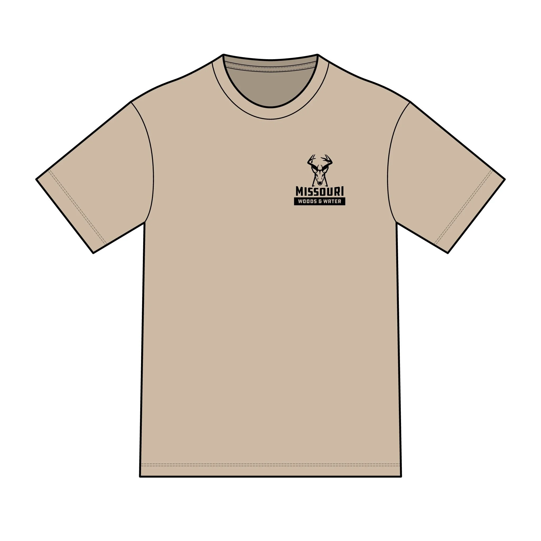 Soft, lightweight tee built for mornings at the blind and slow drives down gravel roads. A muted tan canvas carries a bold, ink-dark deer skull and antler mark on the chest and a larger emblem across the back that reads “Missouri Woods & Water.” The shirt settles close to the body without clinging, letting you layer a flannel or wear it alone when the temperature climbs. It feels broken in from the first wear and ages gracefully — the print keeps its sharp, outdoorsy attitude while the fabric stays breathable for long sits in the stand or afternoon wades in the river. Wear it when you’re tracking rut-season movement, packing gear for a weekend campout, or swapping stories around the fire.