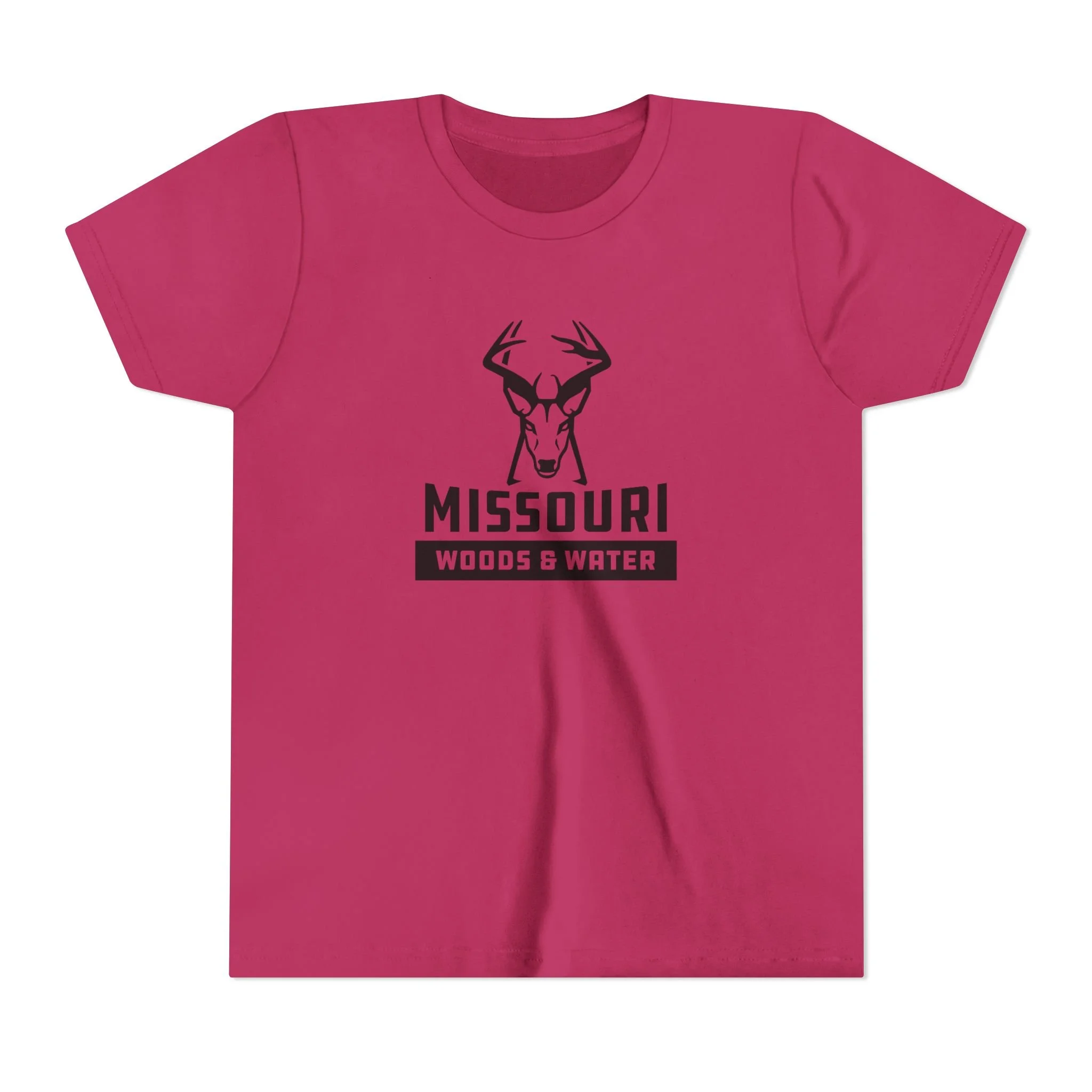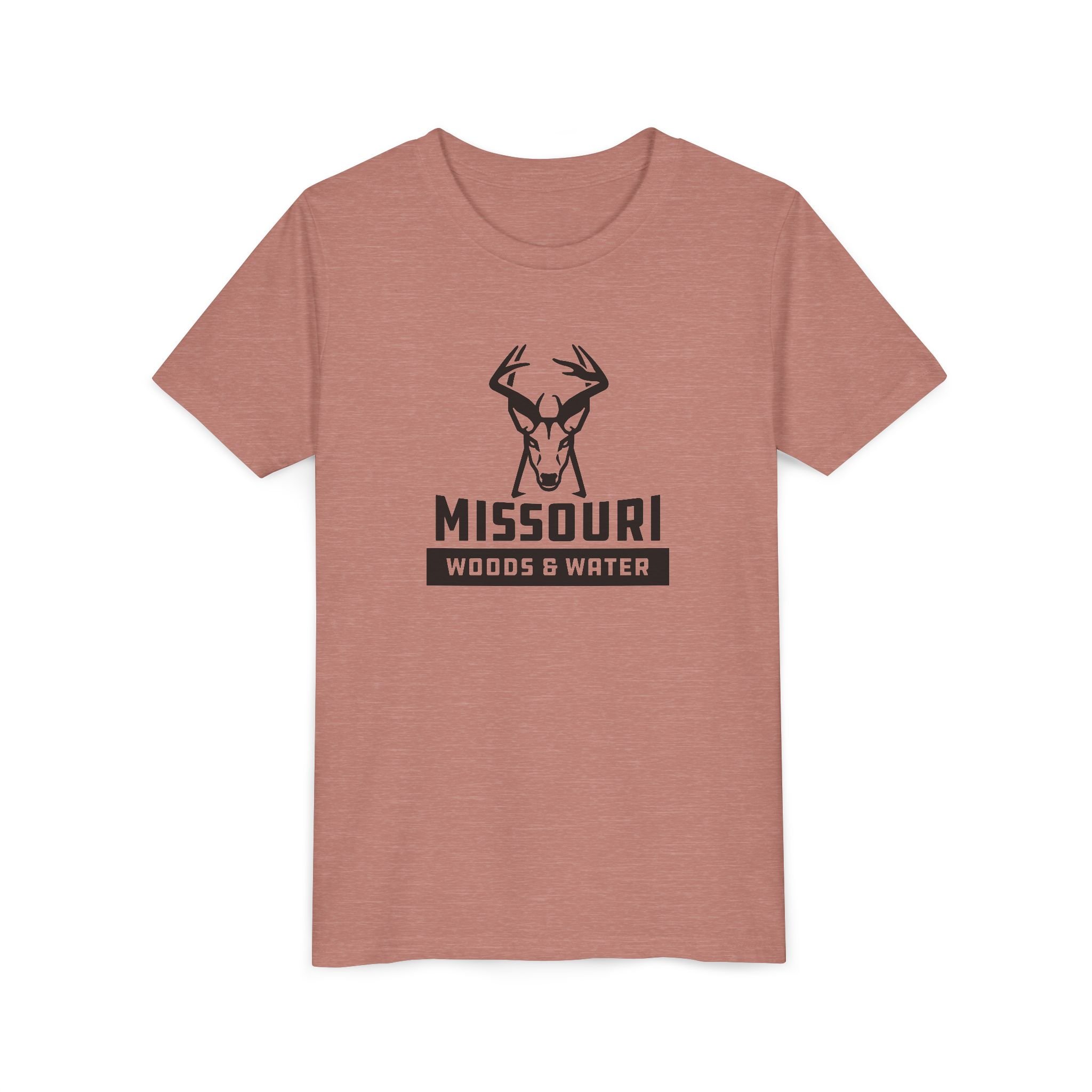 A soft, lightweight youth tee that carries the quiet pride of Missouri’s outdoors. The muted rose-heather fabric and minimalist deer emblem with “Missouri Woods & Water” speak to early mornings on the trail, riverbank afternoons, and evenings around a campfire. Breathable airlume-combed cotton and a retail crew fit keep movement easy for hikes, school nature clubs, or backyard adventures. Built with thoughtful details — tear-away labels, reinforced shoulder tape, and a ribbed knit collar — it wears comfortably through every sprint, scramble, and paddle stroke. This shirt settles into the everyday: sun-warm, slightly worn-in, and ready for the next exploration.